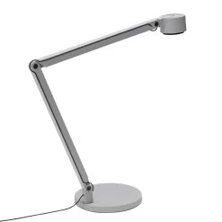 Pressed steel shade with a high-gloss wet spray finish. Pressed aluminium legs with a clear anodised aluminium finish. Die cast aluminium inner bottom legs. Braided fabric cable with