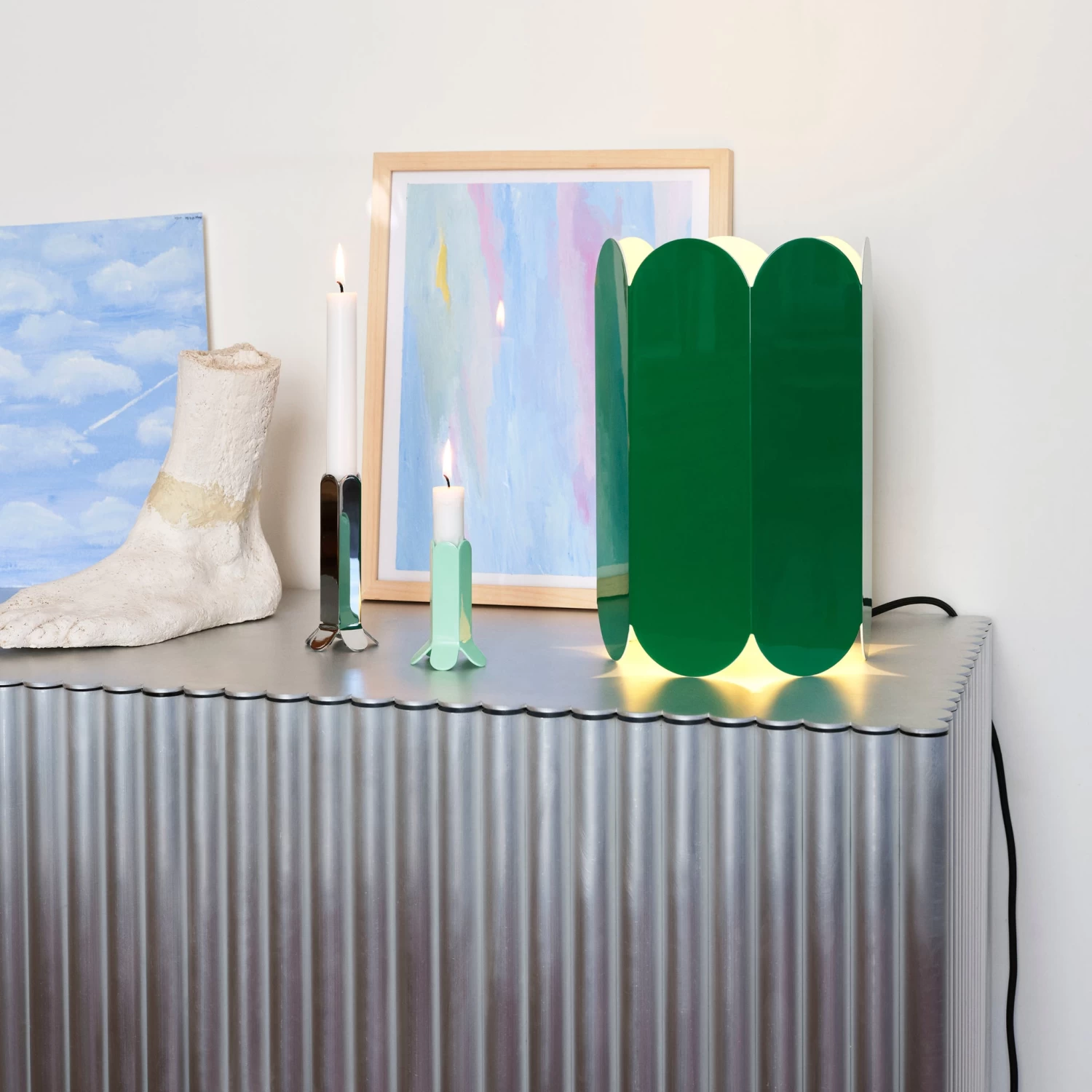 Part of the wider Arcs collection, the Arcs Table Lamp is defined by a continuous chain of curved arches that form a single, sculptural element.
