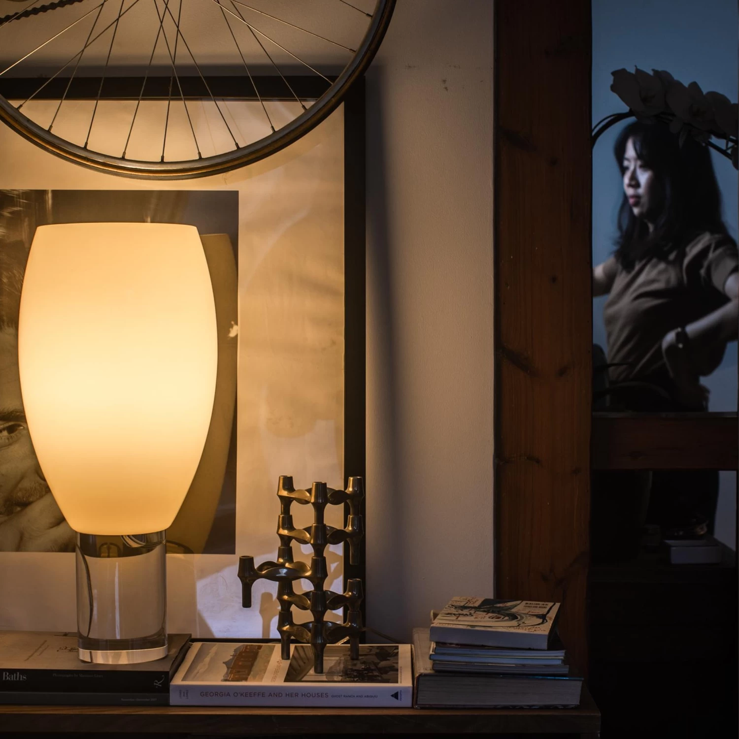 Blown glass plays the starring role in the Buds series – combined with a transparent base that emphasises its pure shapes. Buds 1 has a more elongated shape, in a warm white colour that changes whether the lamp is on or off.