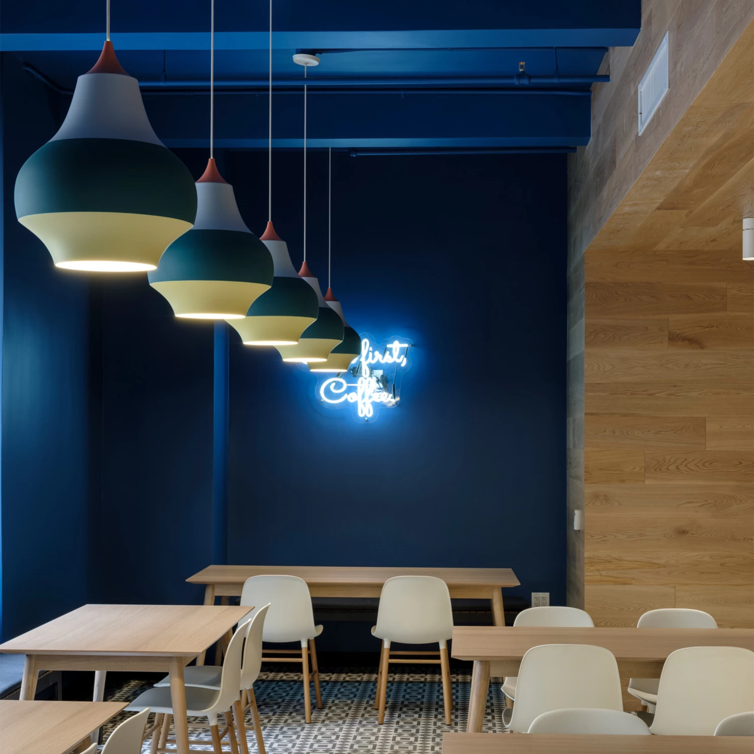 The Cirque series is equally suited for restaurants, bars, kitchens, dining rooms and bedrooms. The fixture provides a downward glare-free soft light by means of the white lacquered inner reflector.