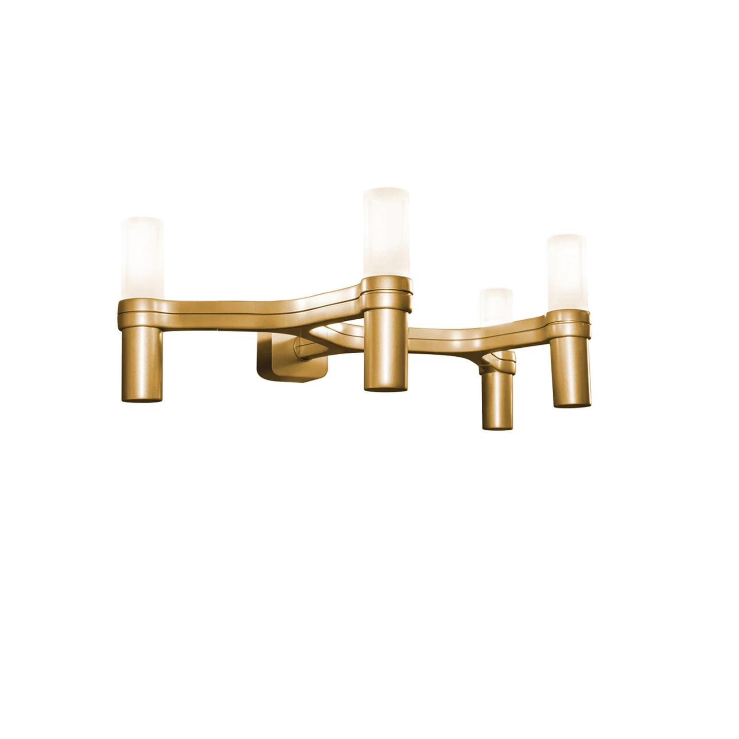 Wall lamp version of the popular and elegant Crown chandeliers, with a modular structure in die-cast aluminium and sandblasted glass diffusers. Several finishes available.