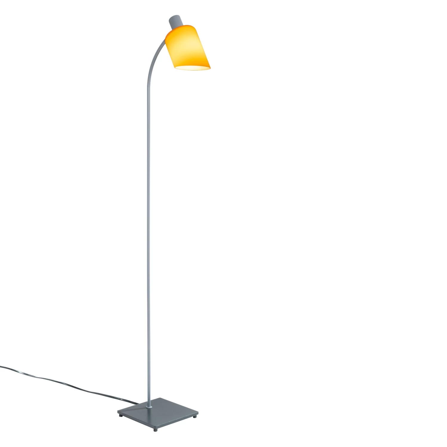 The grey steel stem is anchored to a lifted, almost suspended, darker base. The translucent pressed glass diffuser is available in selected colours outside, while on the inside the white finish preserves the natural colour of the light.