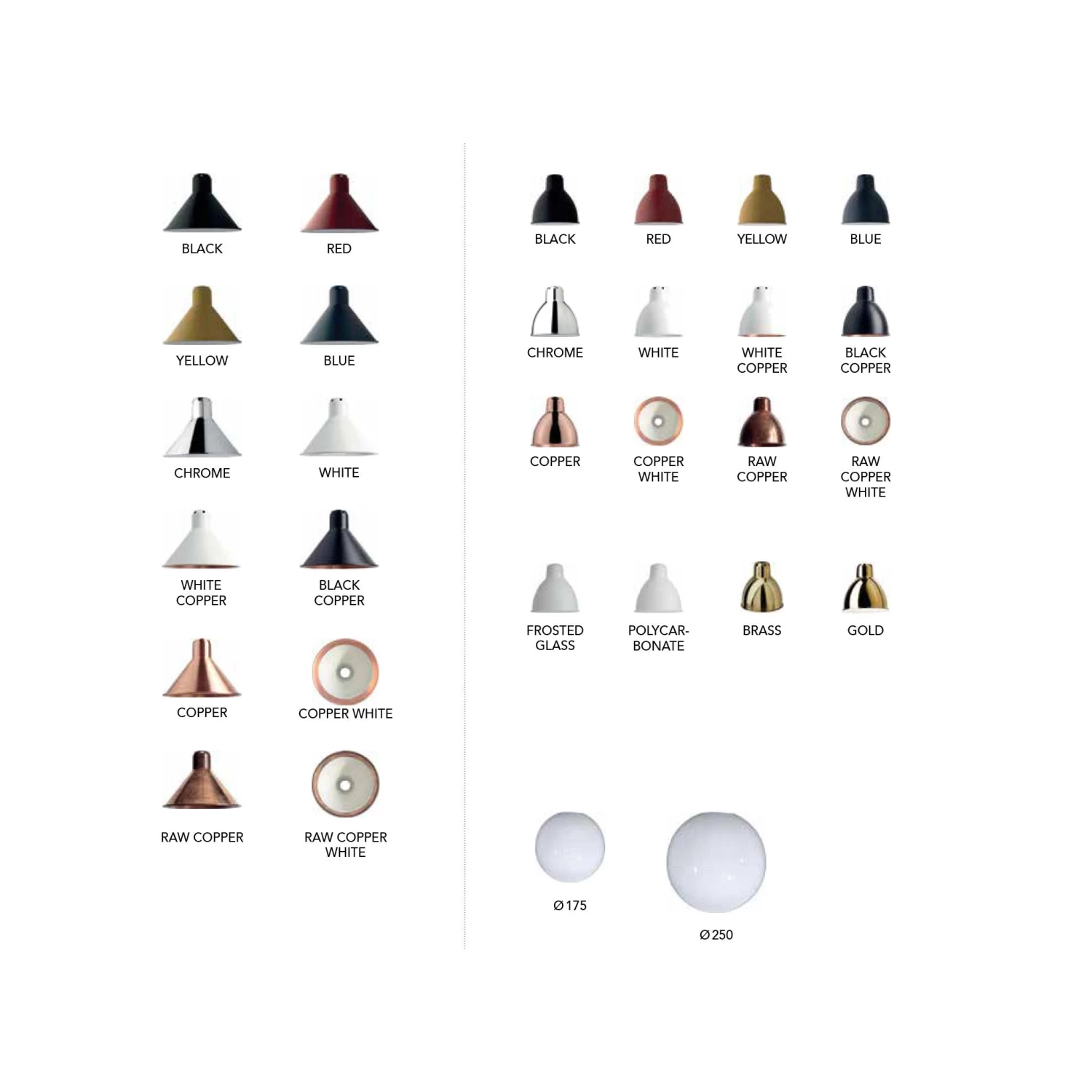 All Lampe GRAS (except for N° 207) can take 13 different finishes (of which 6 of copper and 1 frosted glass). Please note that Raw Copper shades will patinate over time.