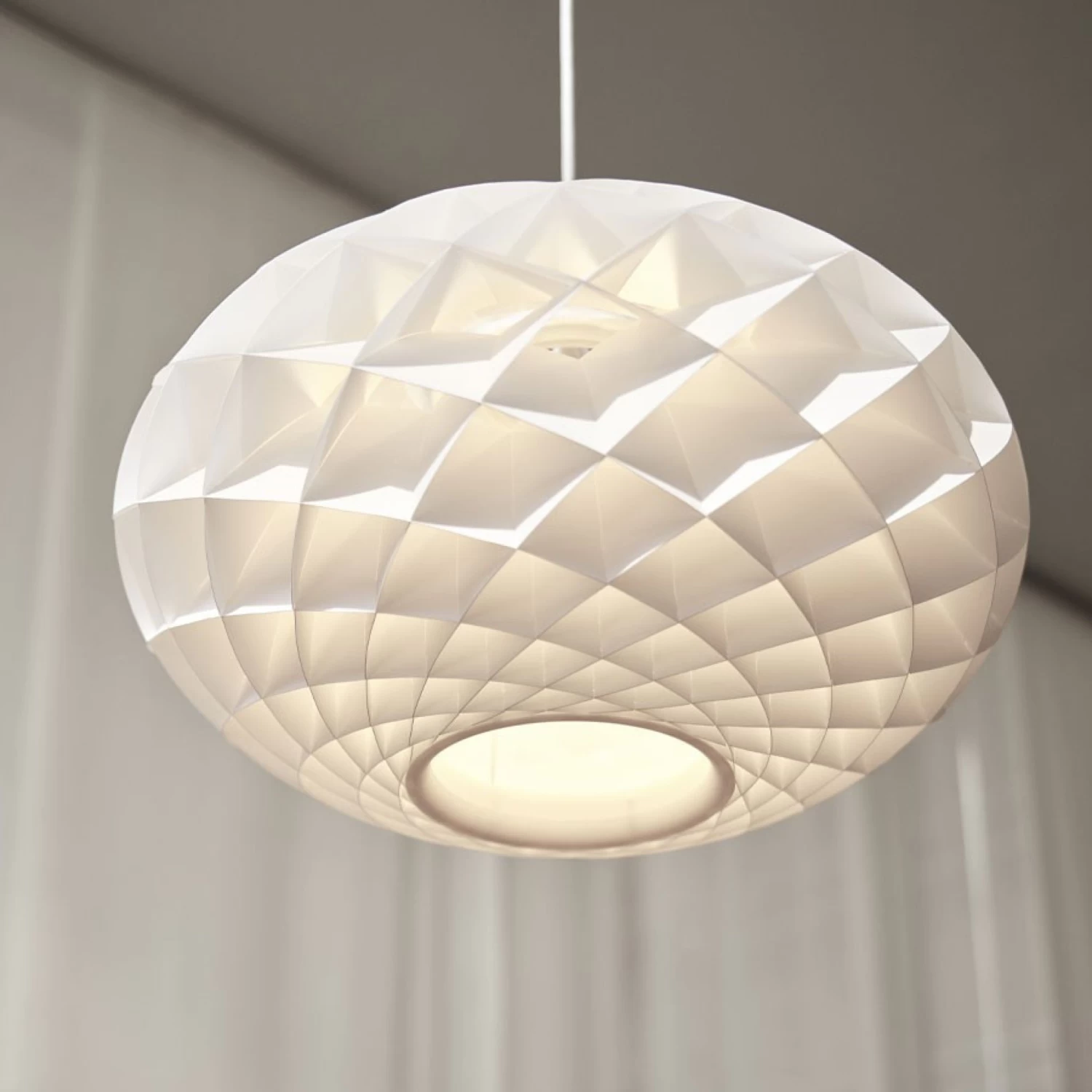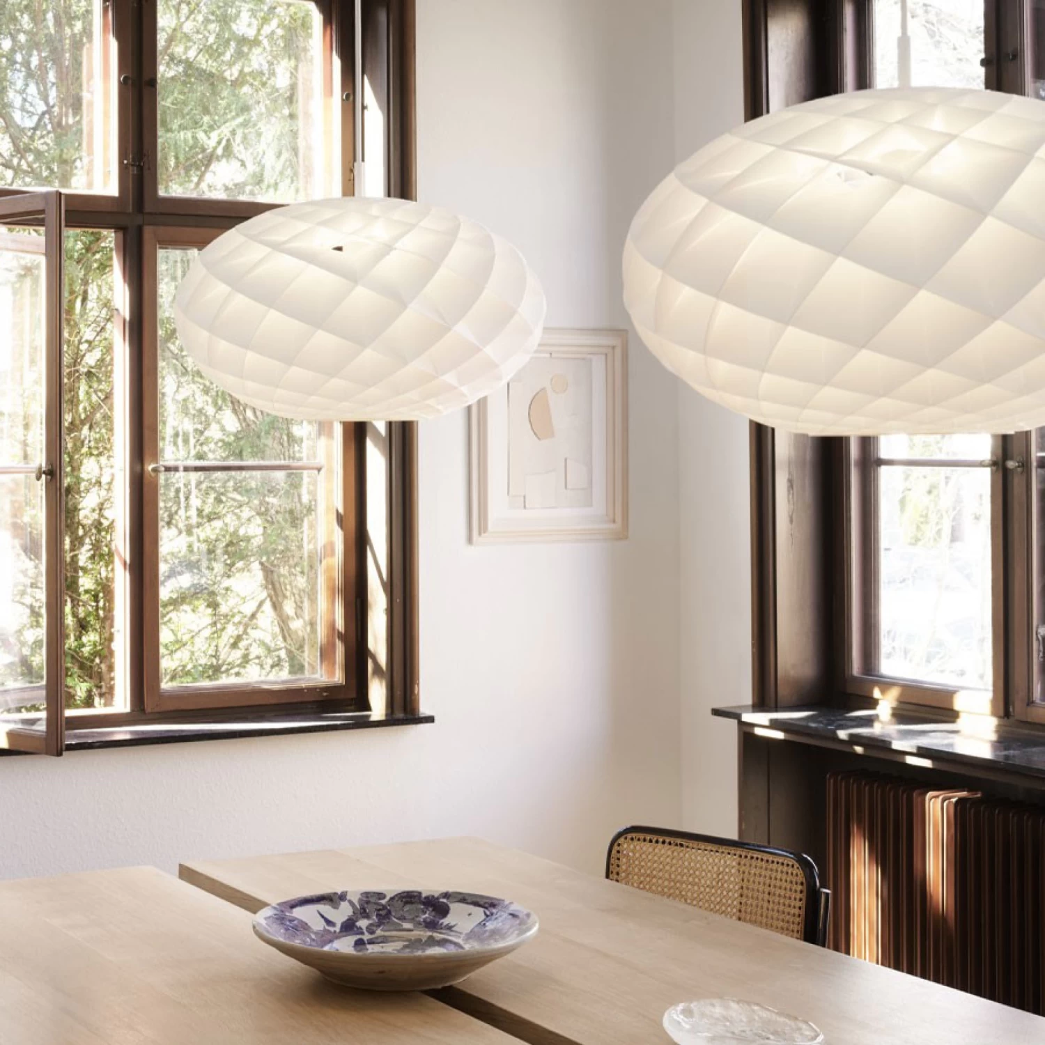 The classic, circular Patera was designed by the Danish designer Øivind Slaatto in 2015. In 2021, the Patera Oval is introduced as an ellipsoid pendant to complete the Patera family and bring it into new applications where ceiling heights are limited, or a flat circular form is preferred.