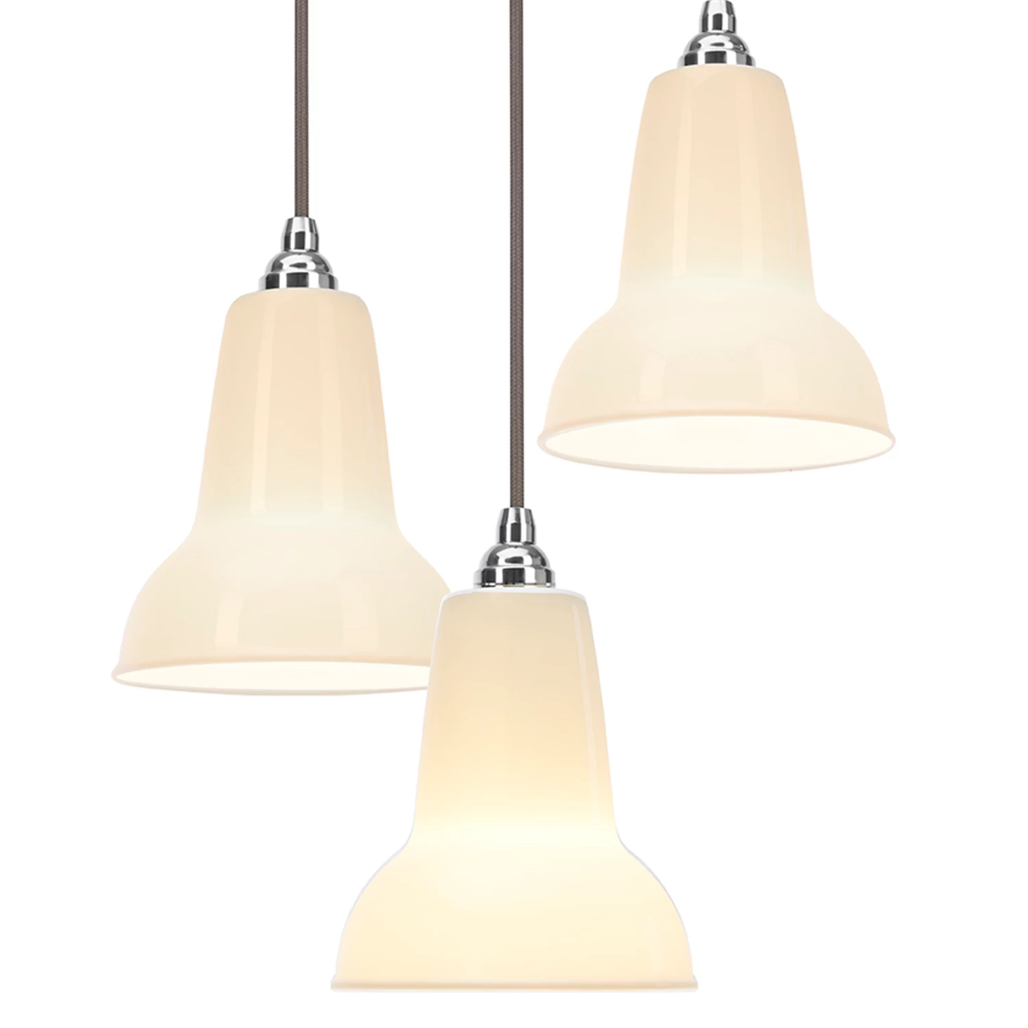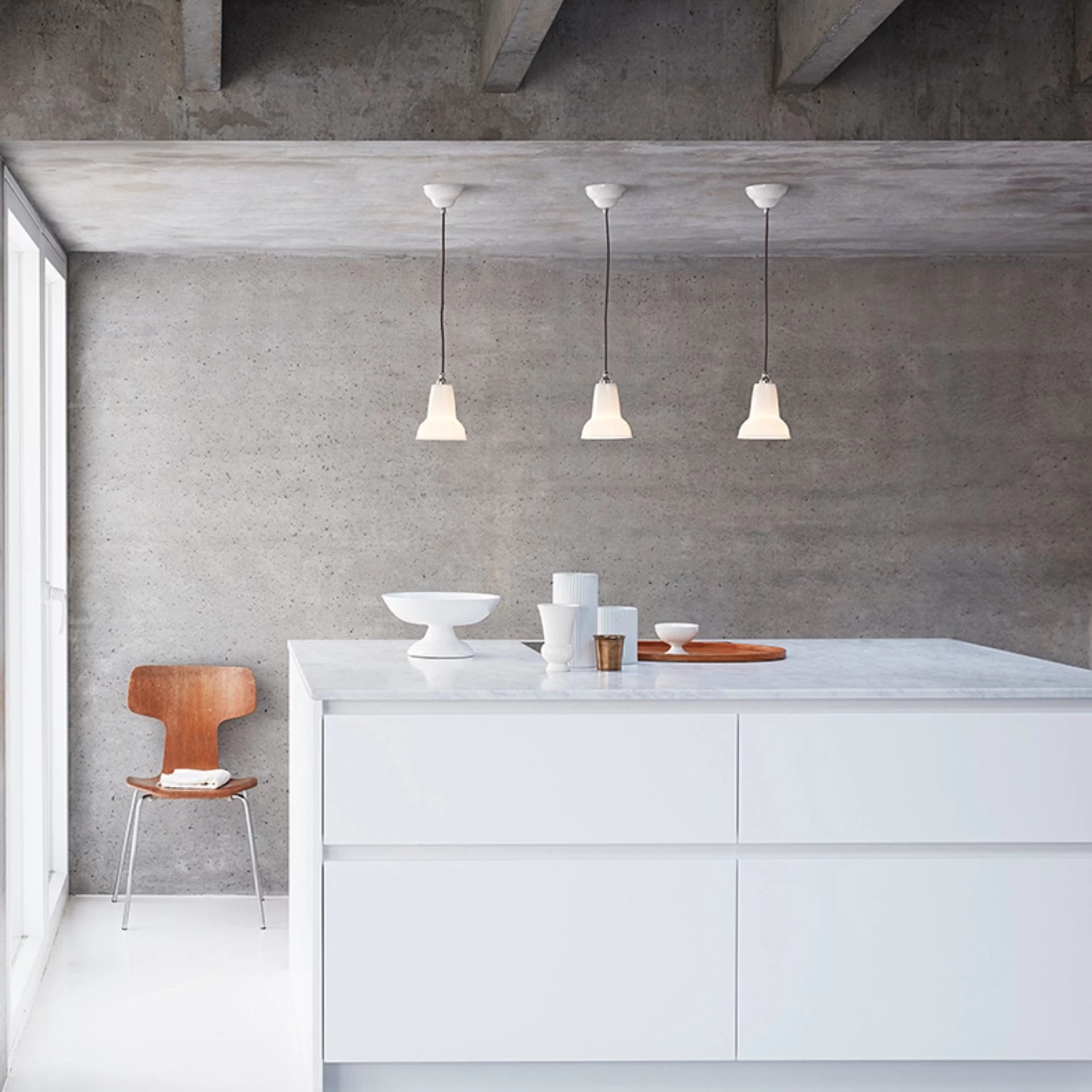 Delicate, translucent and compact, the Ceramic version of the classic Anglepoise® pendant is extremely versatile. A single one, hung low to make a feature of the grey, fabric braided cable, would make a space-saving alternative to a table lamp, while a row of them would be both a functional and stylish way of lighting a worktop, bar or dining table.