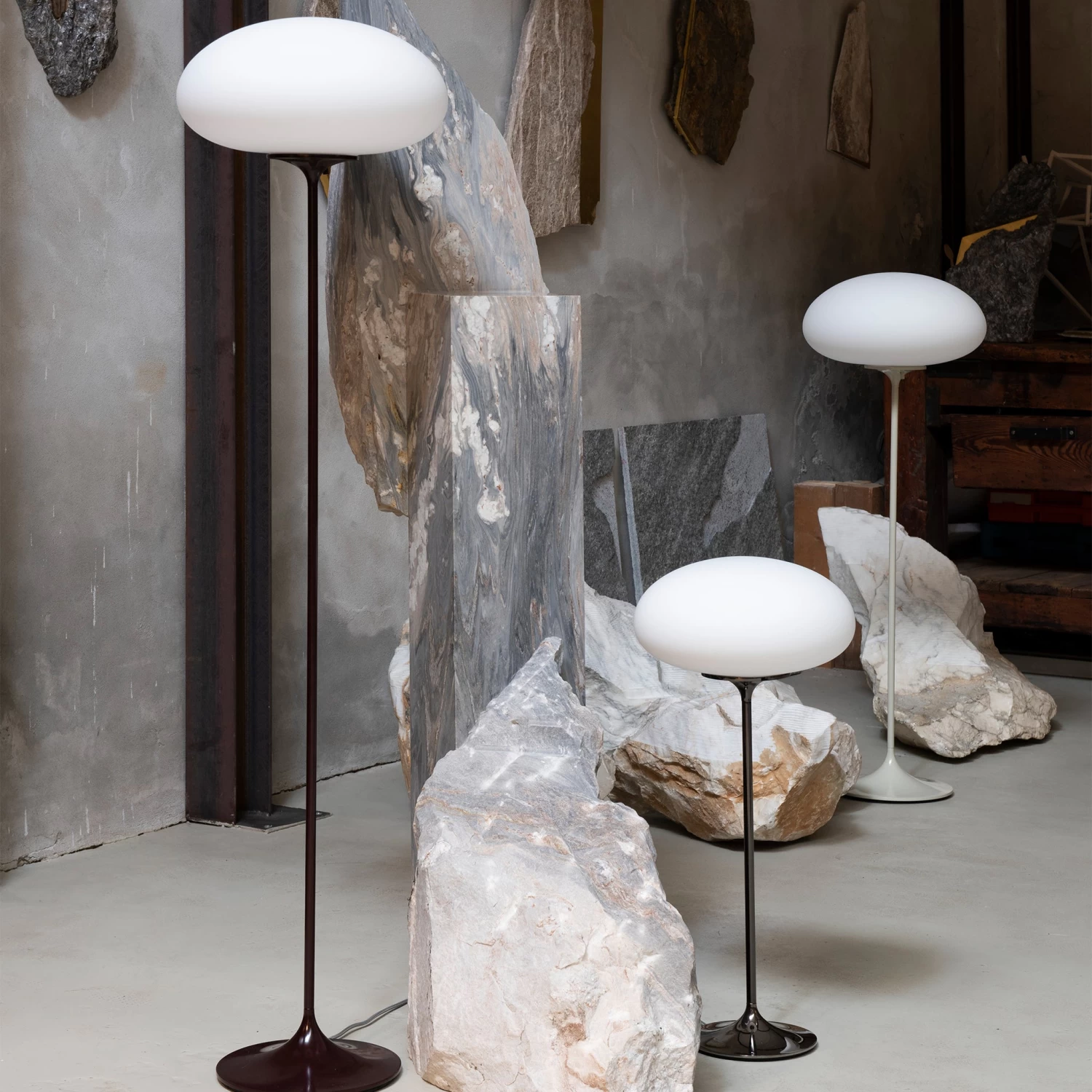 Now remastered by GUBI after almost half a century, the new collection comprises two table lamps, two floor lamps and a new pendant – a simple inversion of the original design – in a contemporary yet authentic colour palette.