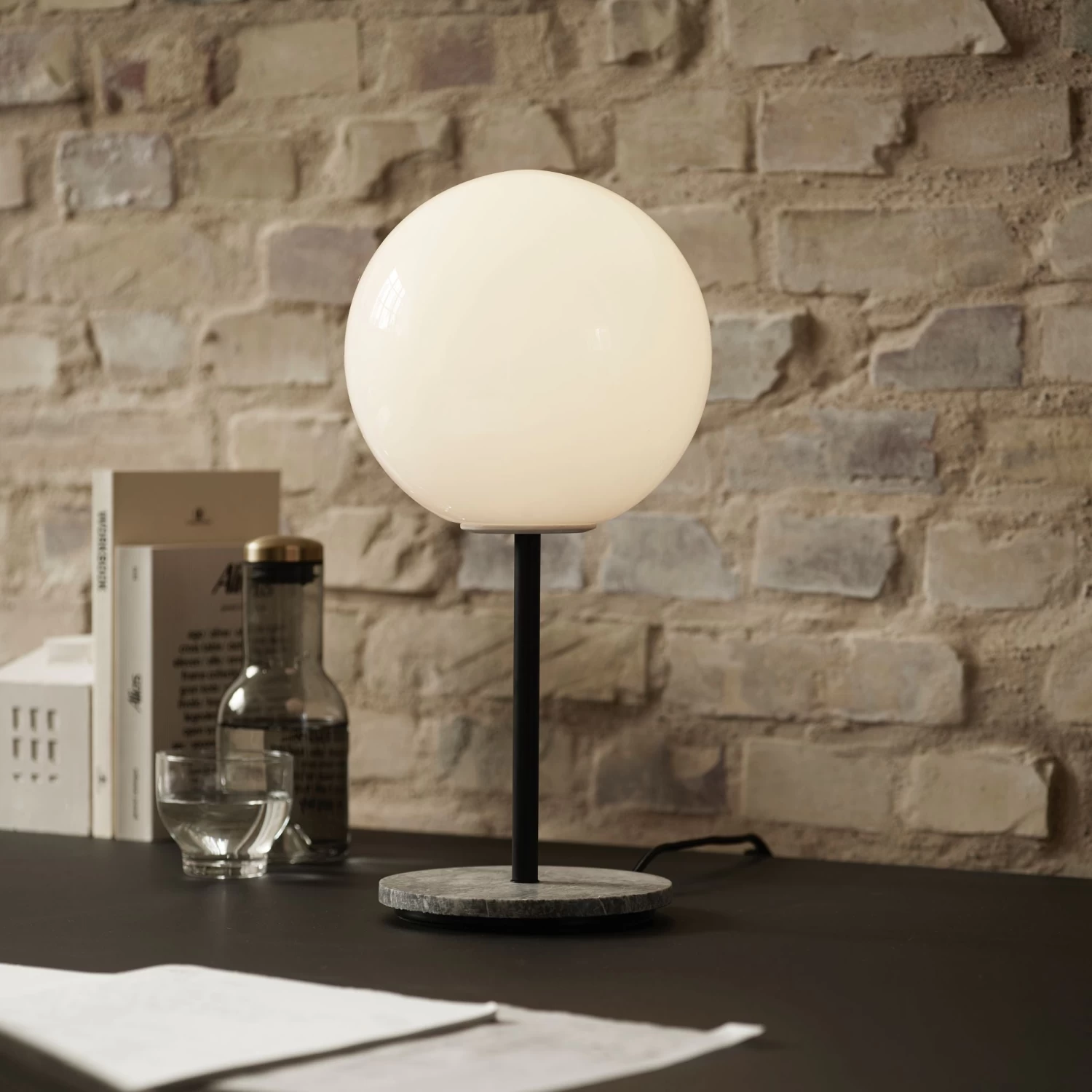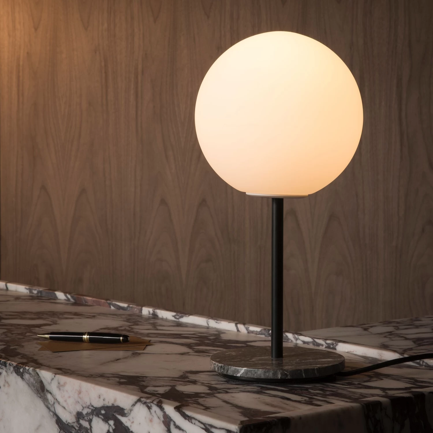 Opal glass, nylon (PA6), LED COB, marble, steel