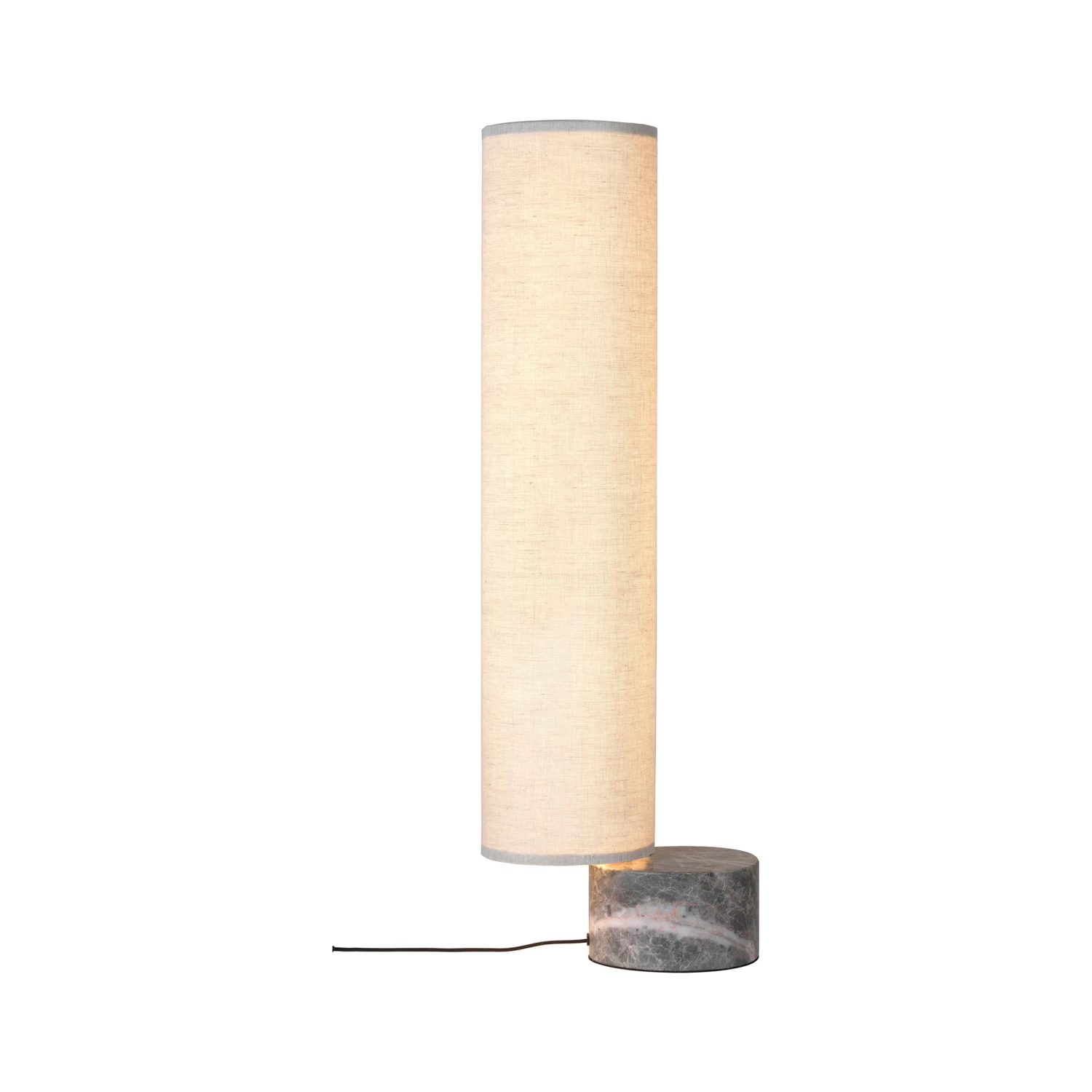 With the teardrop-shaped marble base in Emperador Grey acting as an anchor, the white linen or natural canvas shade can be effortlessly rotated around it, as though it were a sail, gently billowing.