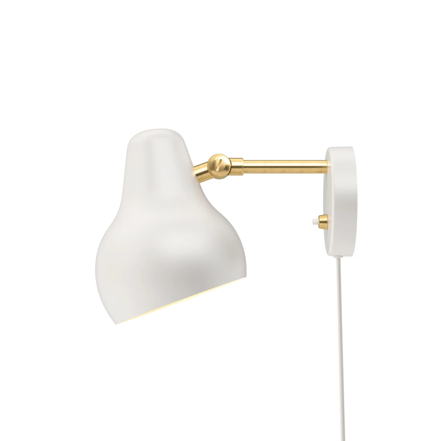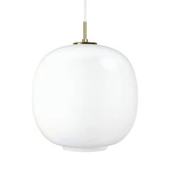 Shade: white powder coated spun aluminium. Base: die cast aluminium. Stem: brushed brass – please note this is untreated and will patinate over time.
